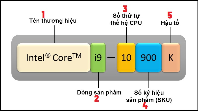 Nhìn vào tên CPU, bạn sẽ thấy quy tắc sau: